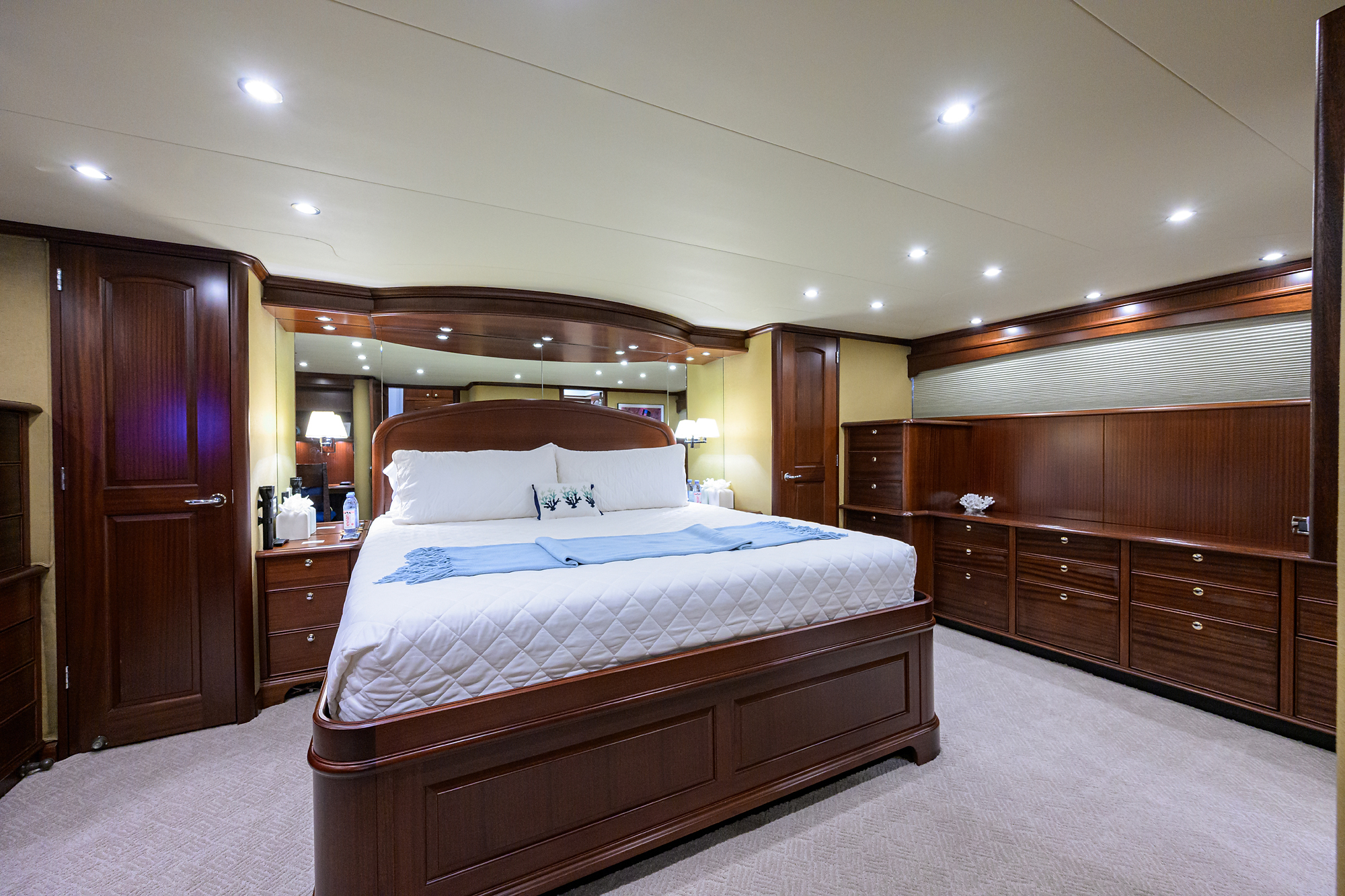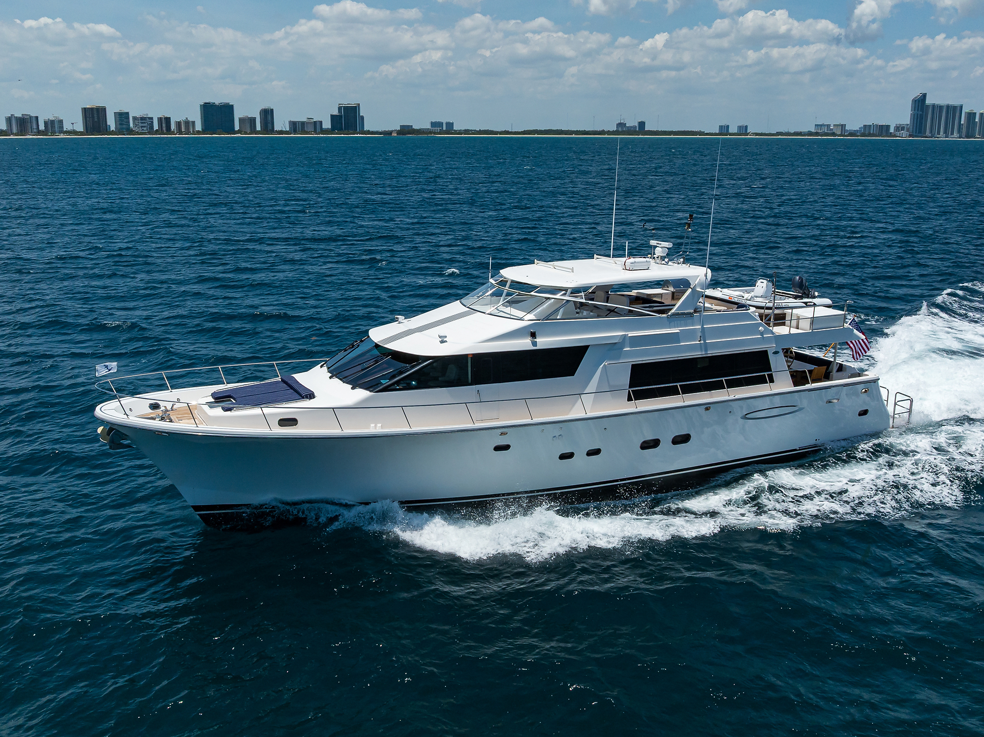 Jule is the yacht for guests who want to go further. The Pacific Mariner 85 was designed by Bill Garden with a hull built for range, efficiency, and an exceptionally quiet ride — and the 2025 refit has brought every system and surface up to current standards. This is a boat that feels as capable on a multi-day coastal cruise as it does on a relaxed afternoon in the harbor.